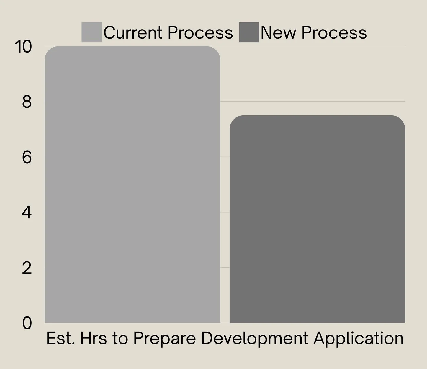 Process mapping, modelling, and analysis of development application preparation identified potential time savings of over one week’s work per year through digitalisation.