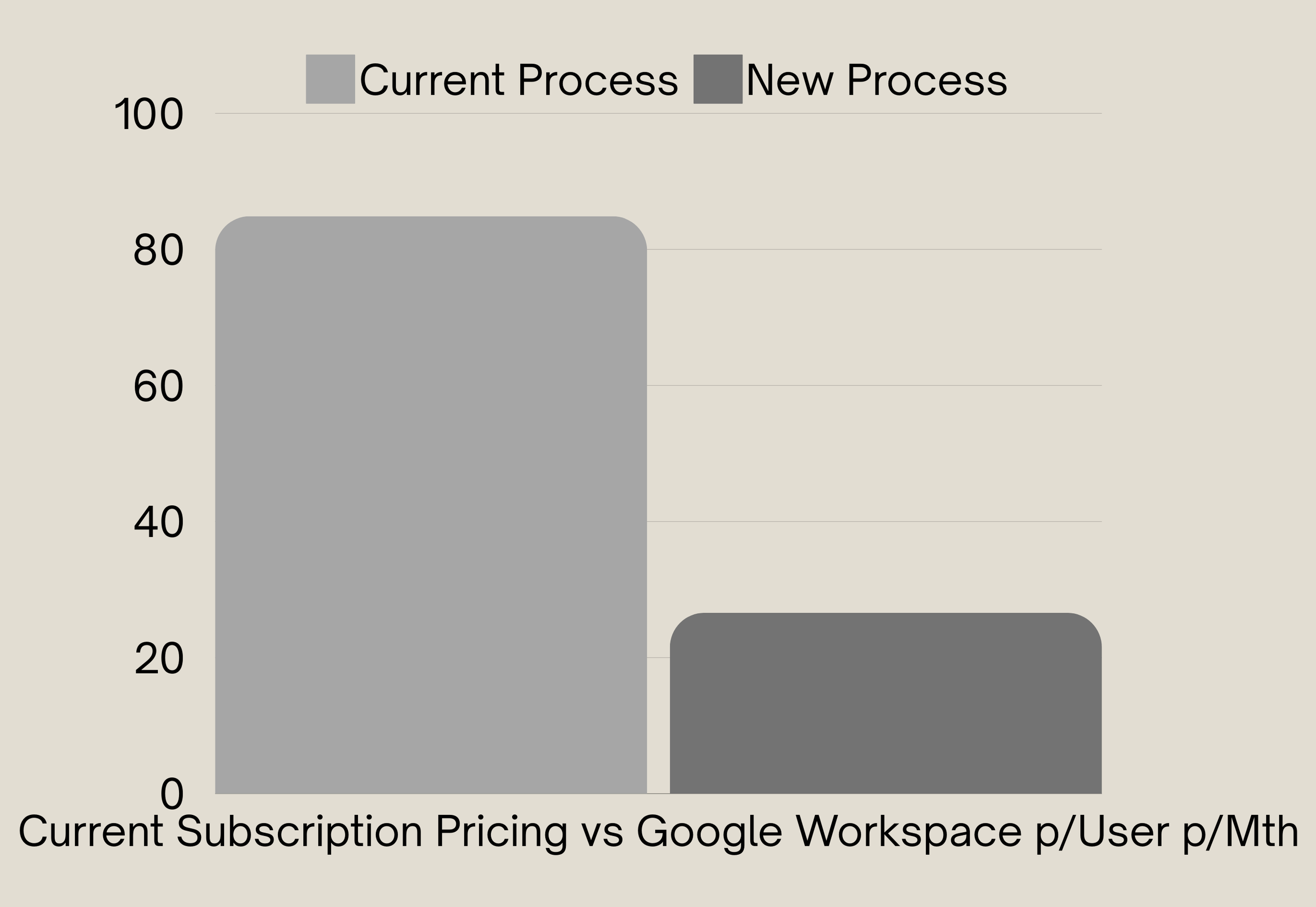 By setting up a business subscription to Google Workspace, the business could save the cost of individual team member subscriptions to Zoom, Docusign, and Dropbox, and save money from no longer needing an on-site server or outsourced IT support, as well as prevent delays or rework caused by staff leaving or going on leave without providing access to their account, enabling full visibility of project status and issues at all stages, and centralising data storage for easy, on-demand access as needed.