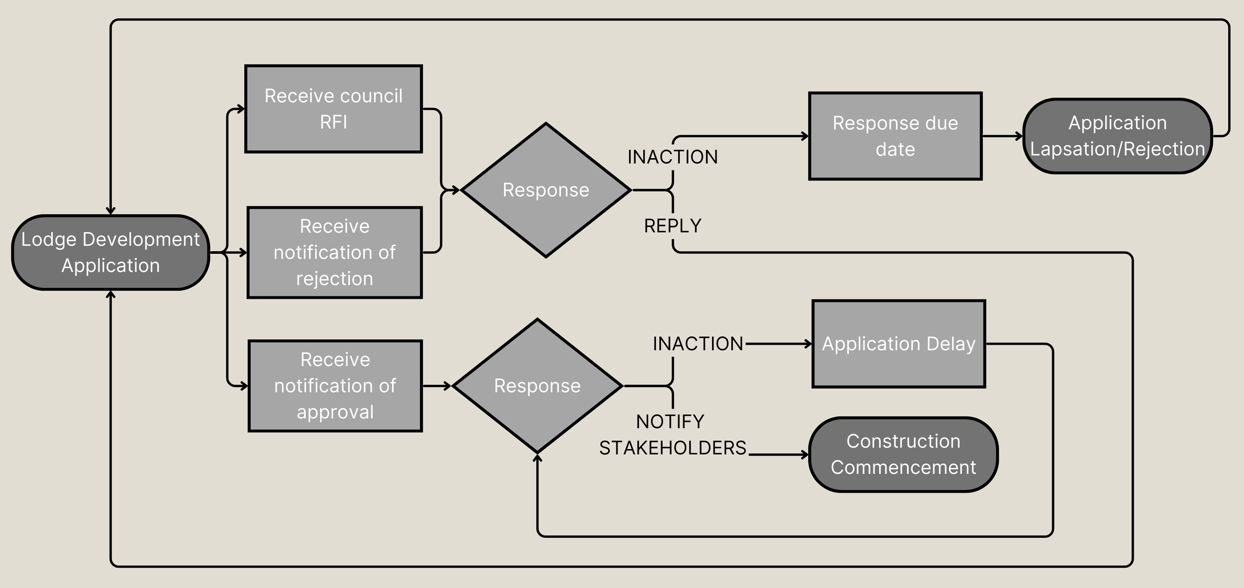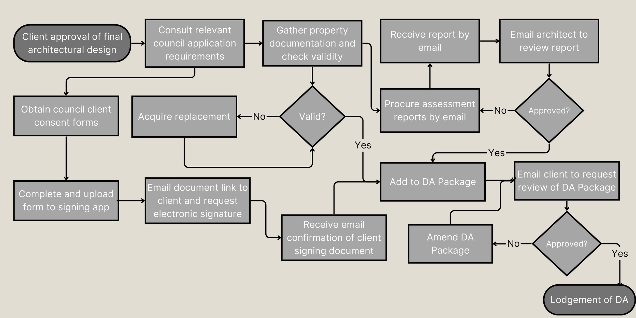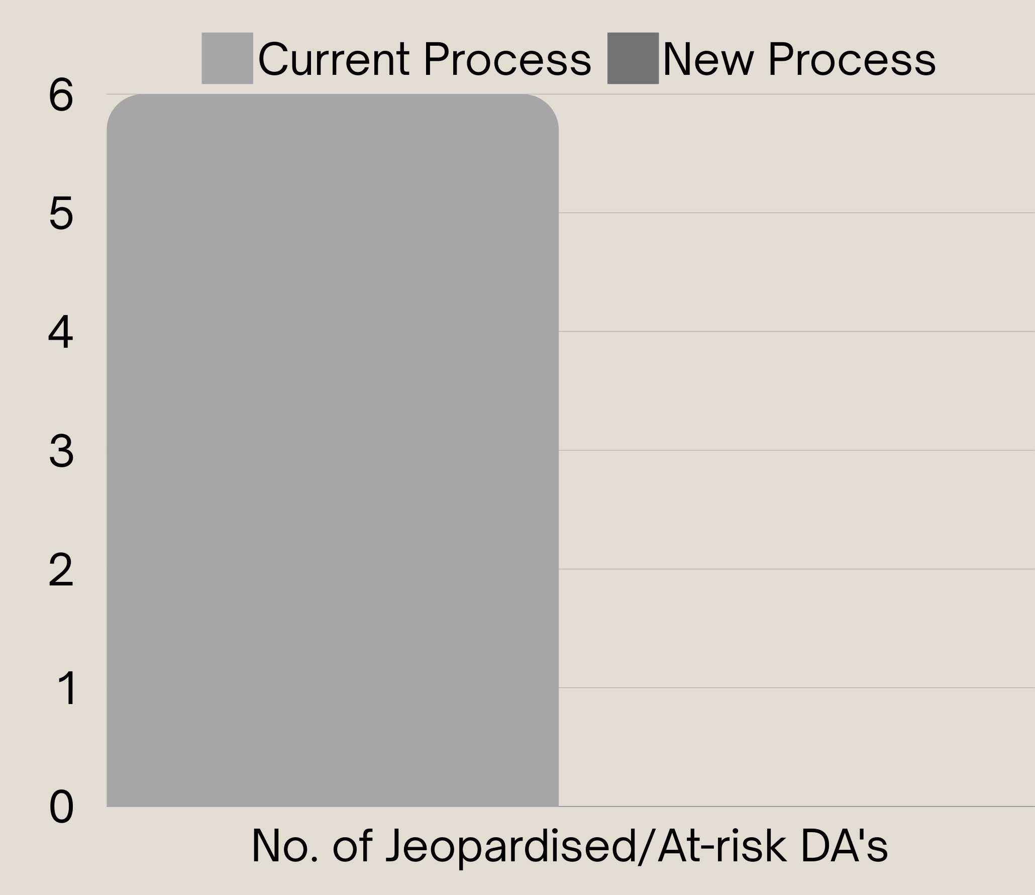 While the business actively maintained this project register in Excel and Google, and then just Google, to manage the architectural design and development application preparation process, once the application was lodged with the government planning portal, the business relied on the staff member who lodged the application to monitor their emails for application updates or requests for information (RFIs) and then convey any important details to the rest of the team and the client. This process was very susceptible to error for a number of reasons, with risk of application rejections or RFIs going unnoticed, leading to the application needing to be resubmitted. When one such occasion occurred, an audit was undertaken of applications lodged to the government planning portal over the past year, identifying further applications that had received adverse outcomes or needed to be resubmitted.
