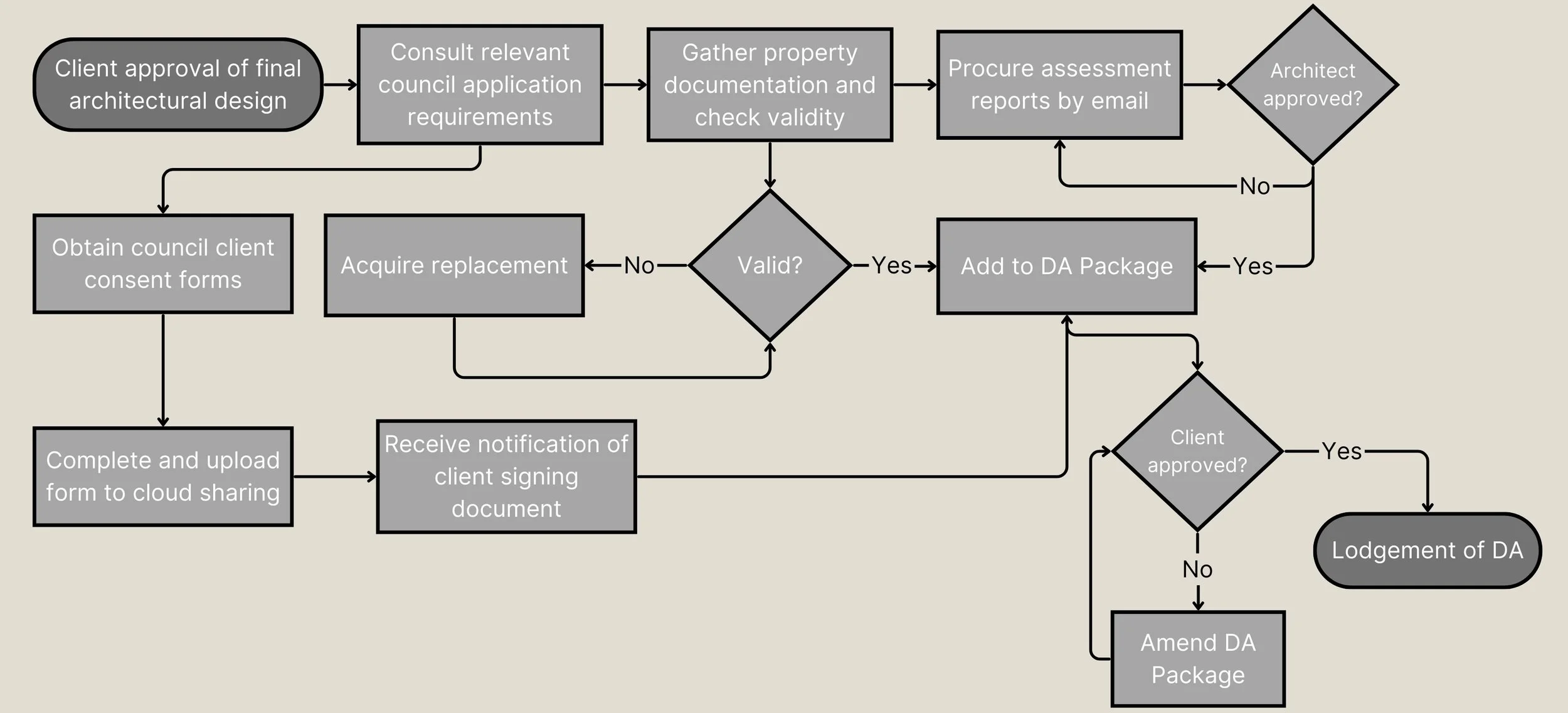 The process of preparing a development application for clients involved a lot of back-and-forth by email between the business and the client, and the business and contractors hired to conduct assessments and inspections. This caused inconvenience for all involved, took a great deal of time, and often created delay in finalising the application for lodgement.