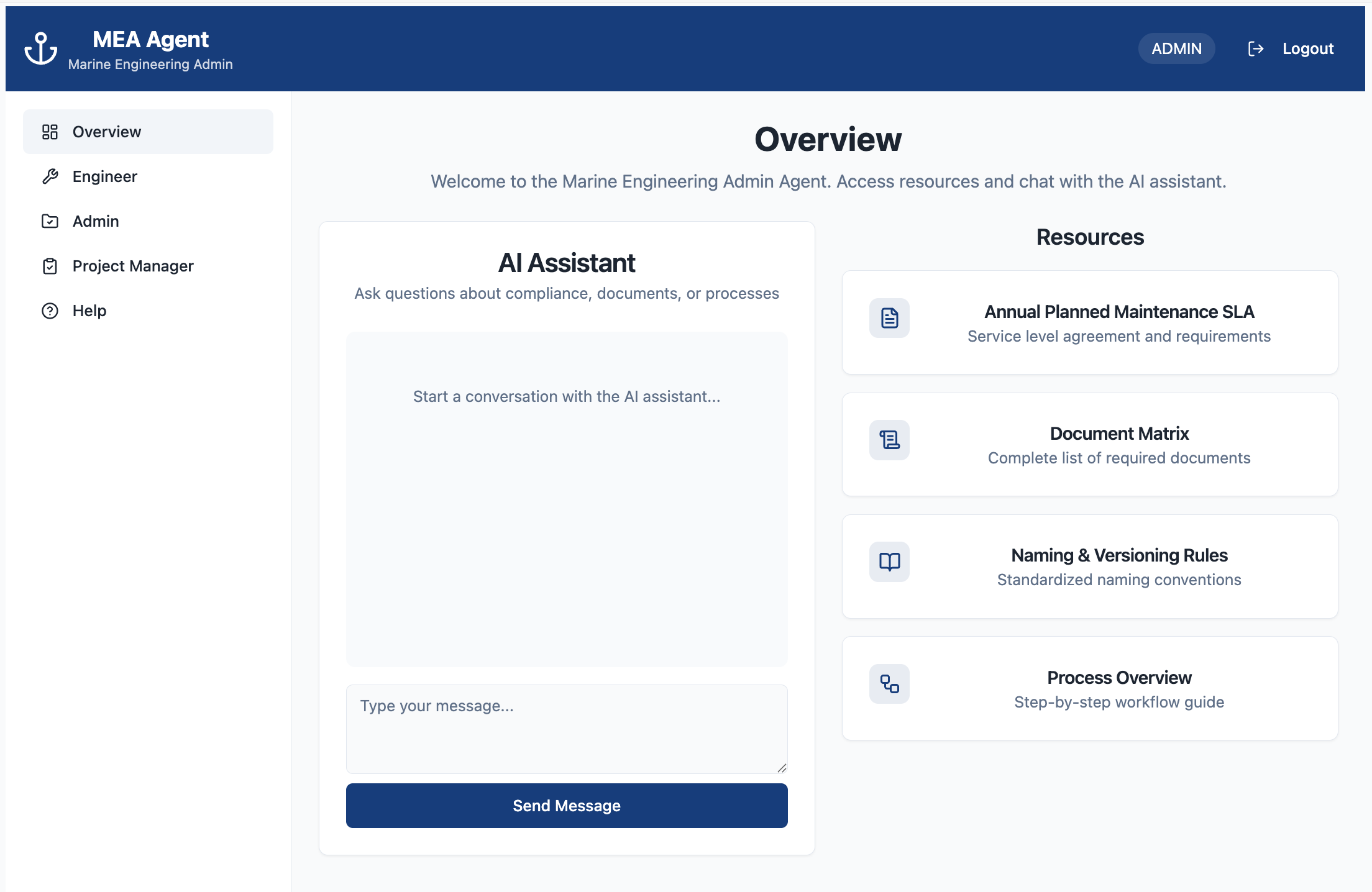 This project builds on five process improvements for a marine engineering service designed in 2024, to augment project administrative processes undertaken by engineers, administrators, and project managers, using today’s agentic AI technology, improving project timelines and quality outcomes and reducing cost of labour from searching for information, fixing errors, or redoing work. The OpenAI Agent SDK and Assistant API backend workflows were combined with a Lovable interface and Replit backend.
