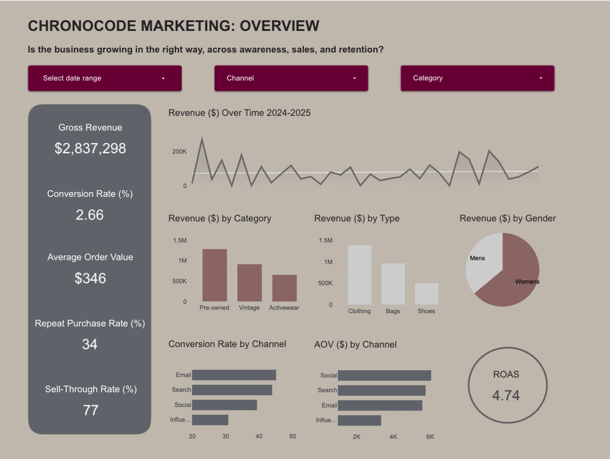 The dashboard consolidated performance metrics across sales, engagement, and retention into a single monitoring view. This directly addressed the 2024 recommendation for regular, data-driven review, enabling ongoing optimisation rather than retrospective reporting.
