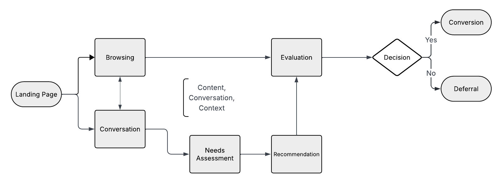 The assistant supports open-ended browsing enquiries, structured product-finding conversations based on multi-factor criteria, and post-purchase support guidance such as optimisation tips or consultation bookings. Importantly, it does not override or obscure standard ecommerce interactions and instead operates as an adaptive interface layered over the existing site structure, preserving transparency, user agency, and trust.